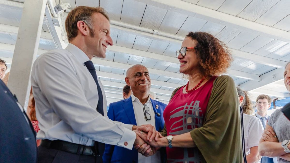 Luciana Santos e Emmanuel Macron se reuniram na Caravana Iaraçu, projeto Brasil-França sobre a Amazônia, antes do início da COP30 em Belém
