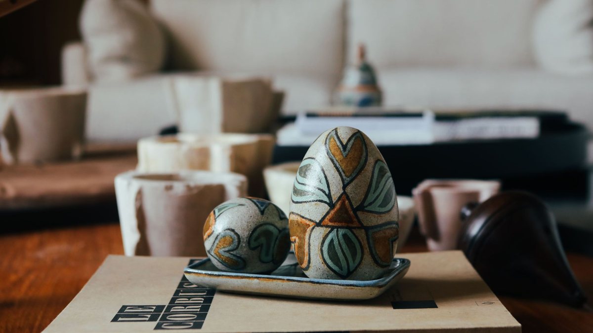As peças comercializadas são produzidas artesanalmente, seguindo técnicas desenvolvidas com o artista, passando por oito etapas manuais e três queimas, resultando em trabalhos únicos.
